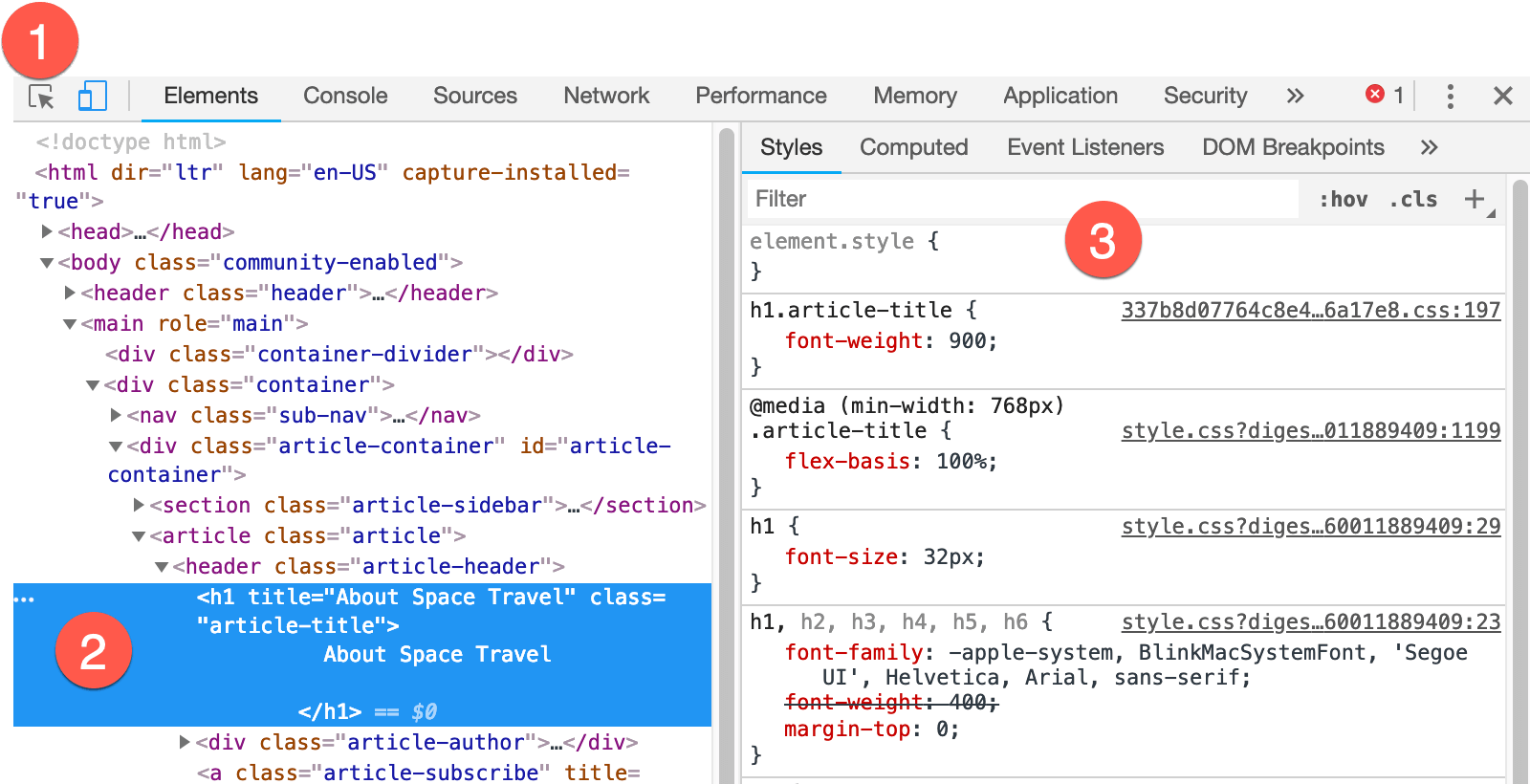 Using a browser's Inspection tool to view the HTML and test changes to the CSS