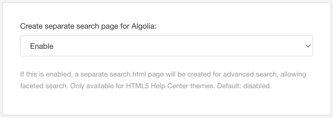 To learn how to enable Algolia in an HTML5 help center layout, see Enable Algolia Search.